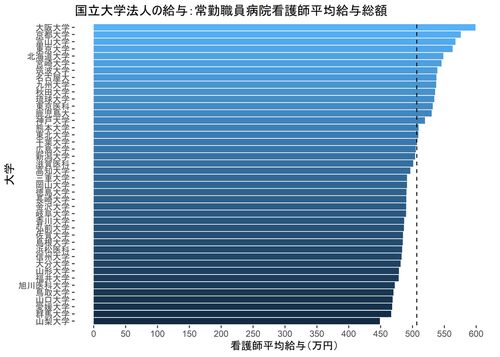 毎年、文部科学省のウェブページで「独立行政法人、国立大学法人等及び特殊法人の役員の報酬等及び職員の給与の水準」として公開されている。 そこで、附属病院をもつ国立大学法人の病院看護職員、つまり国立大学病院の看護師給与を令和元年度公表資料(つま…